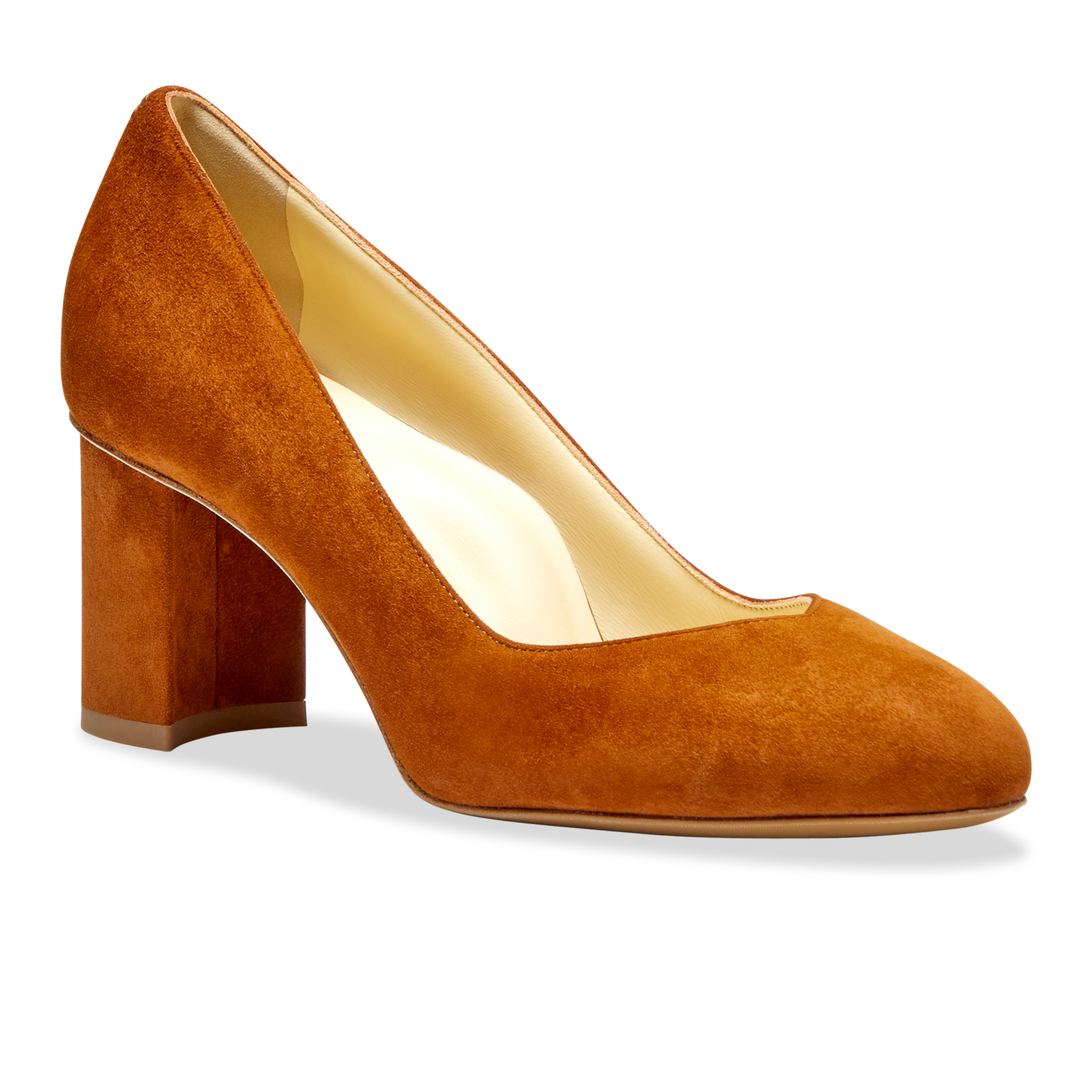 Part of the . the Perfect Round Toe Pump in cognac suede is a chic alternative to the classic stiletto. Featuring a rounded toe box. 70mm block heel. and our signature Perfect Features: anatomical arch support. extra footbed padding. and a flexible. supportive outsole – this pump delivers both style and comfort.