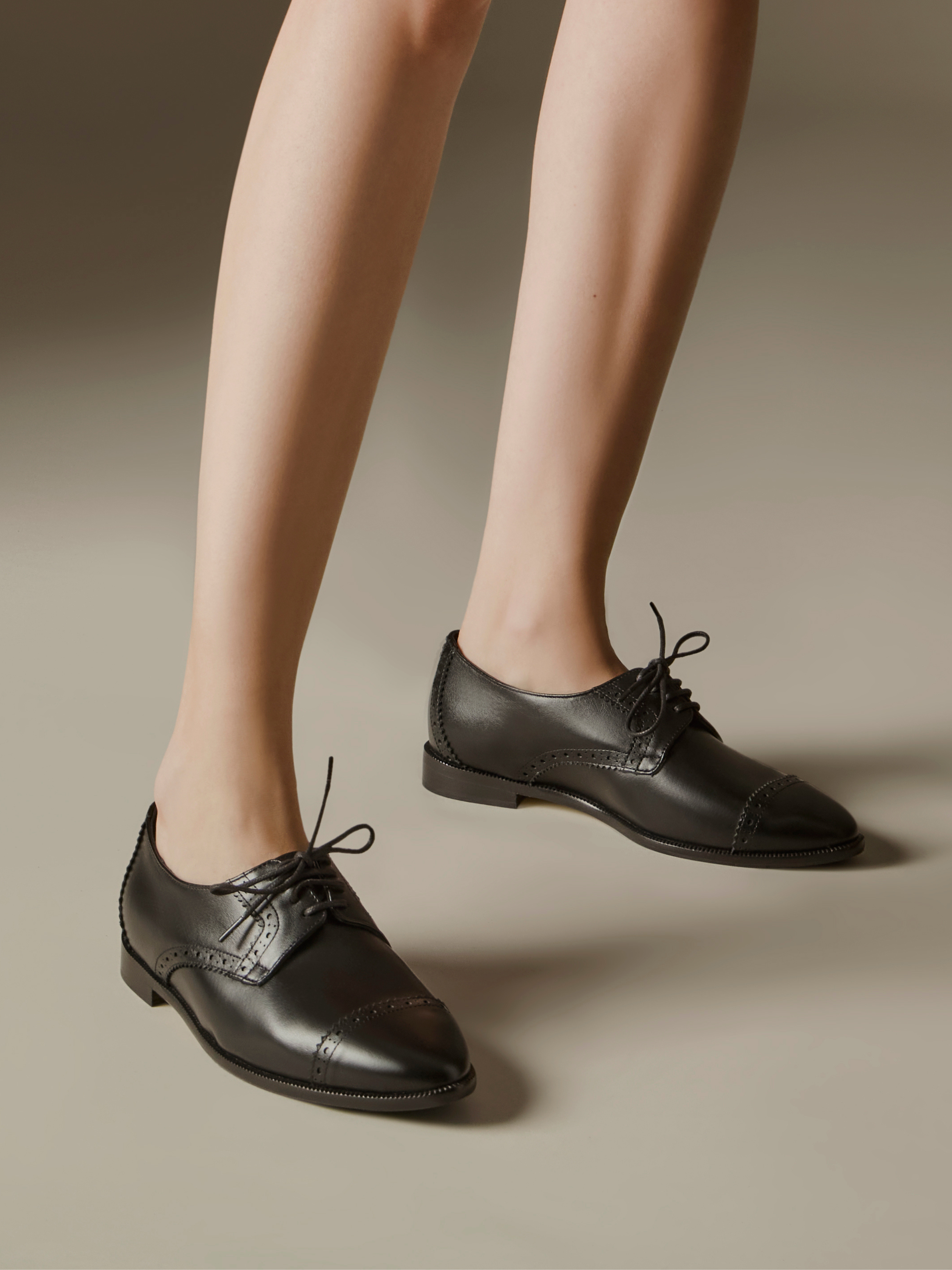 Exclusively part of the . this Derby draws inspiration from the refined craftsmanship of vintage luggage and the intricate woodwork of grand train interiors. Polished yet practical. it features delicate brogue detailing that adds a subtle feminine touch. Perfect for navigating bustling stations or cobblestone streets. it blends timeless design with everyday sophistication.